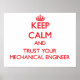 Póster Mantenga la calma y confíe en su ingeniero mecánic
