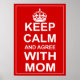 Mantente Tranquilo Y De Acuerdo Con Mamá. Parodia del clásico vintage "Mantenga la calma y siga" poster de la Segunda Guerra Mundial.