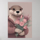 Reservados todos los derechos © Angelandspot Una nutria adorable contiene un ramo de flores