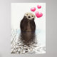 Un poster con la imagen de una nutria linda con corazones flotando hacia arriba. Los corazones son rosas y chubby, con una brillante reflexión. Esta nutria es bastante adorable con sus patas descansando bajo su pellita peluda. Su piel se ve mojada por pasar el rato en el agua.