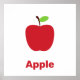 manzana roja sobre fondo blanco con palabras rojas. Ayuda a tu pequeño a aprender frutas con este diseño de manzanas.