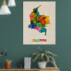 Mapa de las acuarelas de Colombia en un fondo vintage
