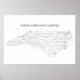 Mapa del estado de Carolina del Norte con nombres de condado y contornos en blanco y negro. Este poster de mapas del condado es útil para el seguimiento de la escuela, el negocio, la referencia o la información.