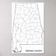 Póster Mapa de esquema de Condados de Alabama