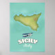 Mapa de Sicilia Italia con un hermoso viejo avión de apoyo.