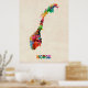 Póster Mapa de la acuarela de Noruega