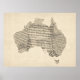Póster Mapa de la vieja hoja de música de Australia