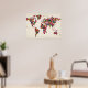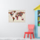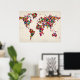 Un mapa del mundo compuesto por coloridas siluetas de mariposas sobre un fondo de estilo vintage