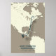 Póster Mapa de migración de colibríes con gaviotas de gom