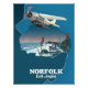 El mapa de Norfolk East Anglia presenta un bonito estilo decorado con un avión ligero.