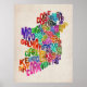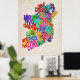 Mapa de texto de tipografía con los condados de Irlanda. Texto multicolor en un fondo vintage.