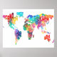 Un mapa de texto tipográfico del mundo en un estilo de acuarela urbana. Cada país está representado por su nombre, que tiene la forma de encajar en la zona geográficamente correcta. Prácticamente todos los países están representados se esperan de algunas de las islas más pequeñas del Pacífico y el Caribe.