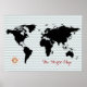Póster mapa del mundo negro en chevron