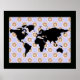Póster mapa del mundo y rosa de brújula