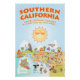 Visión brillante y detallada del sur de California - con Los Ángeles, Anaheim, Long Beach, San Diego y otras grandes ciudades más la mayoría de los pueblos de playa - personajes de zany juegan en la playa y el desierto, montañas y valles. Esta encantadora escena lo tiene todo - un surfista cuelga diez veces mientras una sirena se sienta en una roca, una ballena asesina salta del agua mientras un t-rex ruge un desafío, una pareja de playa muscular flex para impresionar, animales zoológicos esperan a los turistas y un toro golpea a un toro luchador..