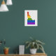 Esta obra de arte muestra el estado de Idaho formado a partir de un arcoiris colorido.