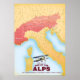 Mapa ilustrado del cartel de viaje de los Alpes.