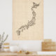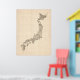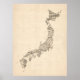 Un mapa de Japón, hecho de un collage de partituras antiguas y antiguas sobre un fondo de estilo antiguo.