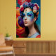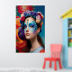 Póster maquillaje de la cara azul floral