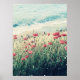 Cachorros y mar. Fotografía de un campo de amapola a orillas del mar. Tonos antiguos.
