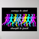 26.2 maratón. Valor para empezar. Fuerza para terminar. Coloridas y inspiradoras mujeres maratonianas para maratonistas. El diseño único de corredores multicolores contra un elegante fondo negro destaca como un gran acento deportivo en tu casa o oficina.
