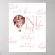 Este encantador cartel de bienvenida de la fiesta de cumpleaños incluye una bonita foto de globo de aire caliente y nubes rosas, junto con una elegante tipografía de guiones. Diseñado por Thisisnotme©