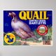 Etiqueta de la cesta de fruta de la marca Quail Contra Costa Bartlet de California.