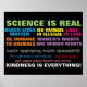 Poster de la protesta del Día del Impuesto. La ciencia es real, las vidas negras importan, ningún ser humano es ilegal, el amor es el amor, ser humano con los animales, los derechos de las mujeres son derechos humanos, salvar a Estados Unidos, salvar a la humanidad, a través de la educación pública, un salario vital, y un seguro de salud de pagador único, la bondad lo es todo.