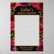 Esta es una prop de foto de ducha de novia bohemio que cuenta con rosas de acuarela de color rojo intenso y fondo negro y letras de caligrafía elegante