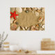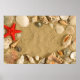 Una serie de conchas marinas diseminadas por la arena para formar un marco.