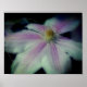 Flor blanca clematis con luces rosadas en flor de fondo crean su propio poster de fotos. Fotografía de flores por Susan.