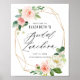 Marco Dorado Geométrico Rosa Florales Acuarela Bienvenida a la Fiesta Nupcial. Póster de bienvenida personalizable para la ducha de novia con ramos de flores románticas en acuarela rosadas y blancas con vegetación y marcos geométricos con lámina dorada falsa. Este letrero floral para la ducha de novia es perfecto para la primavera y las duchas de novia al aire libre. Están disponibles otros eventos y artículos relacionados.