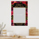 Esta es una prop de foto para despedida de soltera bohemian con rosas de acuarela de color rojo intenso y fondo negro y letras de caligrafía elegante