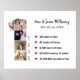 Conmemora tu primer aniversario de bodas con este hermoso cartel diseñado! Con divertidas métricas como 365 días de amor, 52 semanas de besos, 8.760 horas de abrazos, 525.600 minutos de sonrisas y más de 31 millones de segundos de diversión, este cartel creativo captura momentos preciosos del primer año juntos de una pareja casada. Esta decoración para pared es perfecta para mostrar recuerdos especiales y celebrar el primer año de aniversario de bodas de una pareja como marido y mujer. Todas las palabras son totalmente personalizables y el número de la colage de fotos tiene 5 espacios para tus fotos especiales.
