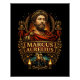 An ornate classical illustration of Roman emperor Marcus Aurelius surrounded by imperial symbols, evoking Stoic wisdom, philosophy, and ancient Roman power.