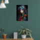 En el mundo sereno de las acuarelas, una cautivadora mujer anime es el punto central de un impresionante poster, exuberante gracia y elegancia en cada golpe. Con sus rasgos distintivos y su ropa vibrante, atrae al espectador a un reino de belleza etérea. La pieza central de la obra es la propia anime, su piel clara brillando suavemente contra el fondo de los tonos acuarelas. Sus delicados rasgos faciales se presentan delicadamente, con grandes ojos expresivos que brillan con un toque de misterio y profundidad. Enmarcada por azotes de negro de medianoche, sus ojos transmiten una sensación de introspección, invitando al espectador a desentrañar los secretos que esconden. Cruzando su cabeza está una cascada de cabello azul que fluye, cada hilo retratado meticulosamente con tonos que van desde el más pálido azul hasta el índigo más profundo. Las hebras bailan y giran alrededor de ella como tendriles de marea suave, añadiendo una energía dinámica a su rostro sereno. Adorada en un kimono tradicional, la mujer encarna la elegancia atemporal con un giro contemporáneo. El kimono es en sí mismo una obra maestra de la acuarela, con su tela en tonos azul intenso, rojo intenso y amarillo radiante. Estos colores se entrelazan y se mezclan a la perfección, creando un fascinante tapiz de tonos que se envuelven alrededor de su forma delgada en elegantes pliegues y remolinos. Contra el telón de fondo de la vestimenta vívida de la mujer, el fondo está inundado de un lavado de color negro acuático. Sin embargo, lejos de ser aburrido o sombrío, este telón de fondo sirve para acentuar la vitalidad de la mujer y su kimono, permitiéndoles destacar en marcado contraste contra la oscuridad. En esta obra maestra de acuarela, la mujer anime en su resplandeciente kimono se convierte en algo más que una figura en una página; es un símbolo de belleza y gracia intemporales, traídos a la vida a través del delicado arte del pincel del pintor.