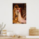 Waterhouse fills the painting with contrasts that heighten the mood. Warm reds and pinks in Mariana’s sleeves and hair stand out against the cool geometry of the checkered tiles and the shadowy room. The mirror becomes more than an object, it is a second stage where self image, memory, and desire seem to meet. Scattered papers near the base of the mirror hint at unread words or unfinished thoughts, suggesting a story unfolding just beyond what we can see. The result is a haunting, romantic scene that feels like a pause between hope and heartbreak.