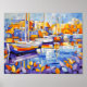 Póster Marina cubista con barcos y reflexiones