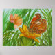 Póster mariposa acuarela en el jardín