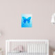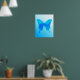 Impresión con una mariposa de color agua simple, grande, en tonos suaves de cobalto, turquesa y azul celeste sobre un fondo de gradiente pastel