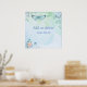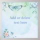 Una mariposa azul sobre un fondo acuático azul y verde de pasta pálida con un florido floral con una sola flor rosa; con o sin texto de su elección.