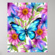 Mariposa azul en un campo de flores, este diseño presenta una hermosa mariposa azul en un campo de flores.
