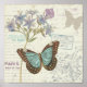 © Pela Studio / Wild Apple. Una mariposa azul y marrón con una flor morada. En el fondo, una silueta de mariposa se combina con las palabras francesas.