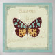© Sue Schlabach / Wild Apple. Una imagen vintage de una mariposa con patrones en sus alas. Los motivos de las alas de mariposa son de colores diferentes.