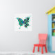 Mariposa pintada de forma artística, ficticia, verde, detallada, con plumas verdes, hermosas, de pavo real sobre fondo blanco.