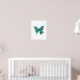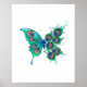 Mariposa pintada de forma artística, ficticia, verde, detallada, con plumas verdes, hermosas, de pavo real sobre fondo blanco.