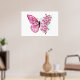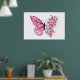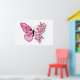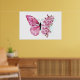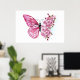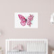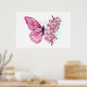 Arreglo floral de mariposa rosa con flores de cerezo japonesas rosadas sobre fondo blanco.