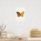 Naranja, mariposa monarca detallada con ala decorada con amapola californiana amarilla y vibrante sobre fondo blanco.