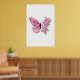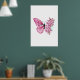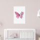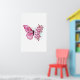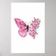 Arreglo floral de mariposa rosa con flores japonesas de cerezo rosadas sobre fondo blanco.