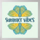 Poster de verano con un hermoso ilustracion de dos mariposas en azul y amarillo y el divertido texto Vibes de verano.